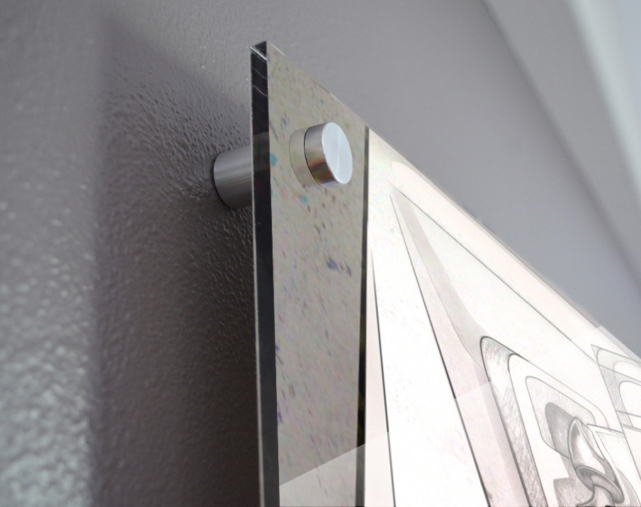 Printed to the edge - Ready to hang - provided with 4 premium polished aluminum stand off ( wall screws and mounting hardware provided )