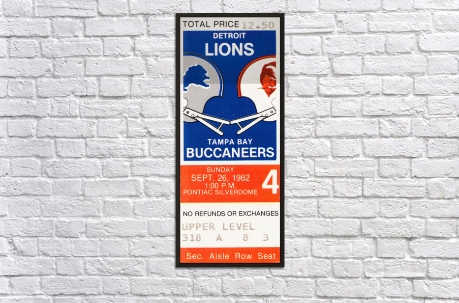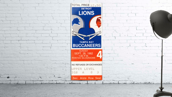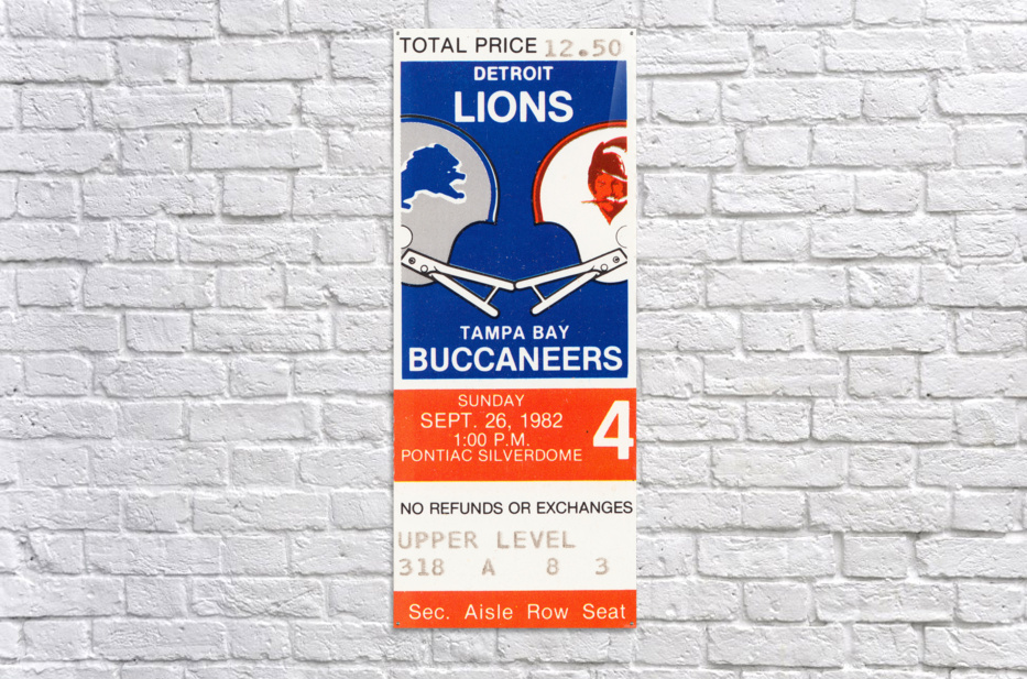 1982 Detroit Lions vs. Tampa Bay Buccaneers Football Ticket Art | Row One | Over 17,000 Historic Sports Prints | Row One pro football ticket art is not affiliated with, licensed, sponsored, authorized, or endorsed by any pro team, league, artist, other brand, or licensing entity. © Copyright 2020 Row One Brand