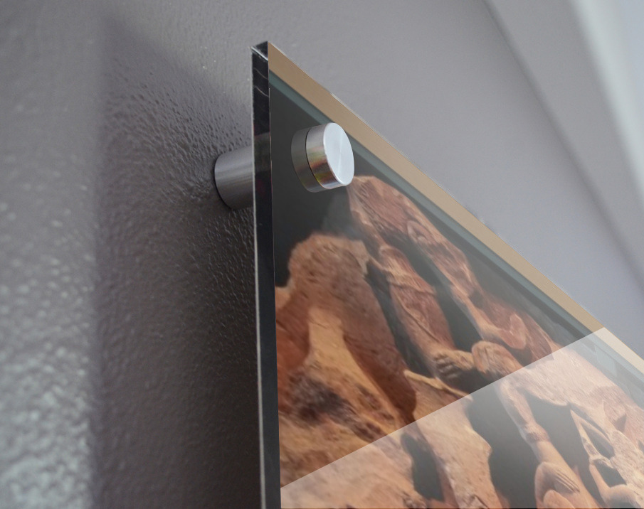 Printed to the edge - Ready to hang - provided with 4 premium polished aluminum stand off ( wall screws and mounting hardware provided )
