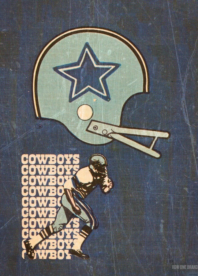 Dallas Cowboy fans will love this genuine 1976 Dallas Cowboys football art remix by Row One Brand created from authentic '76 artwork. Row One Brand's historic football art prints are not affiliated with, licensed, sponsored, authorized, or endorsed by any team, league, other artist, athlete, other brand, or any licensing entity. Row One only uses non-copyrighted historic sports memorabilia dating back to 1876 to create our historic sports wall art prints. Derivative art © 2021 Row One Brand