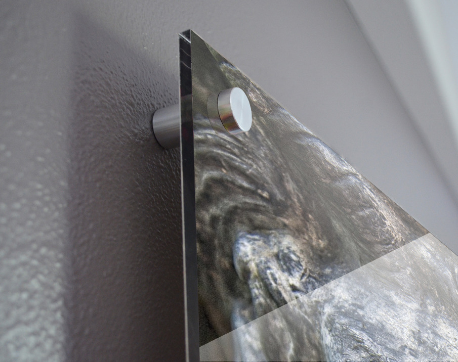 Printed to the edge - Ready to hang - provided with 4 premium polished aluminum stand off ( wall screws and mounting hardware provided )