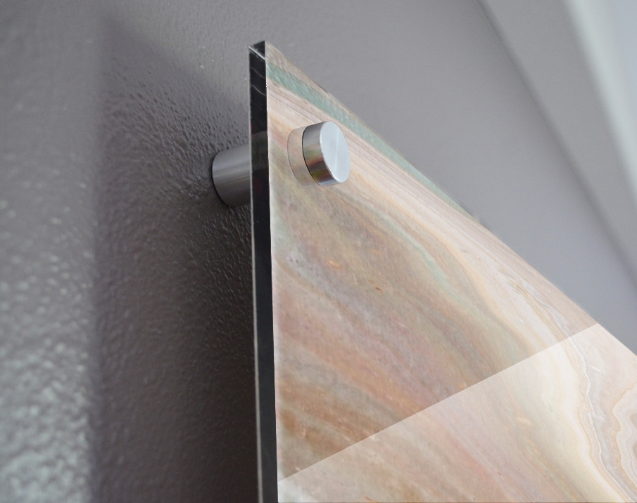 Printed to the edge - Ready to hang - provided with 4 premium polished aluminum stand off ( wall screws and mounting hardware provided )