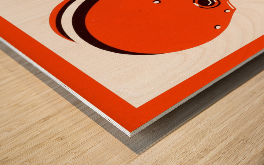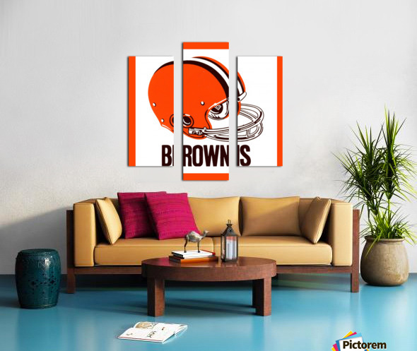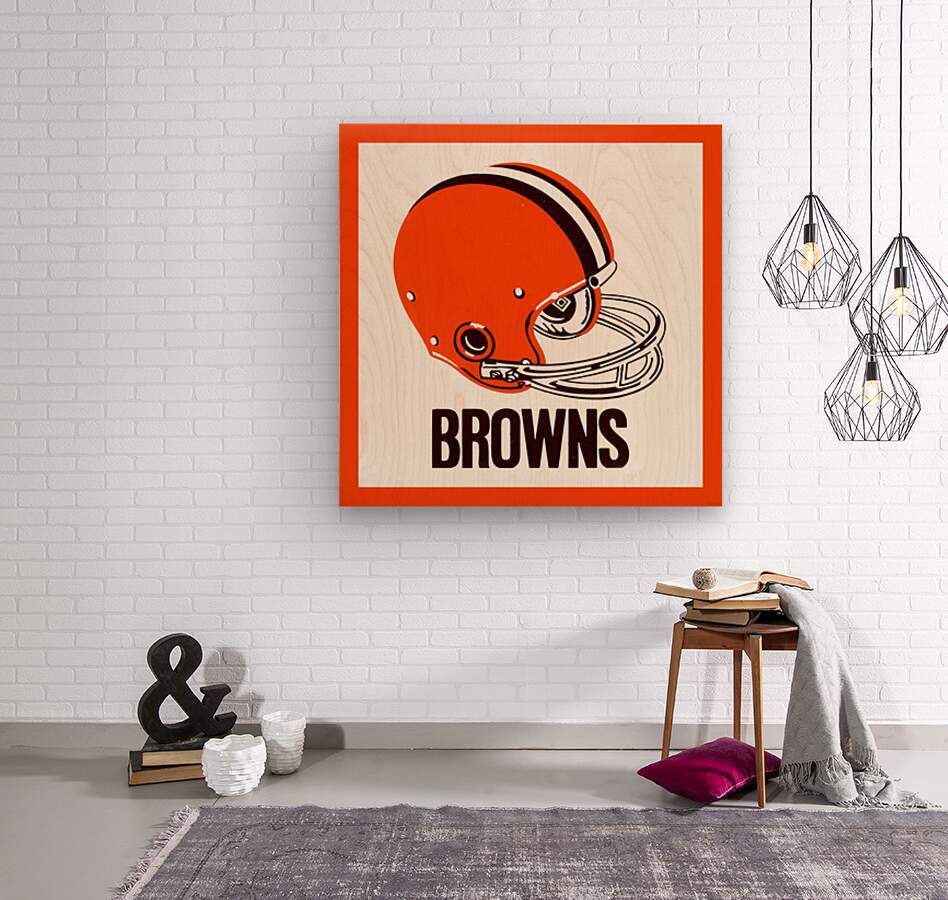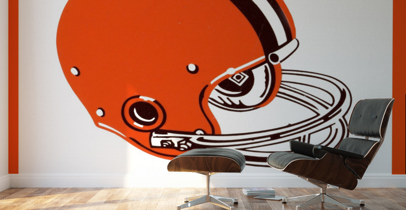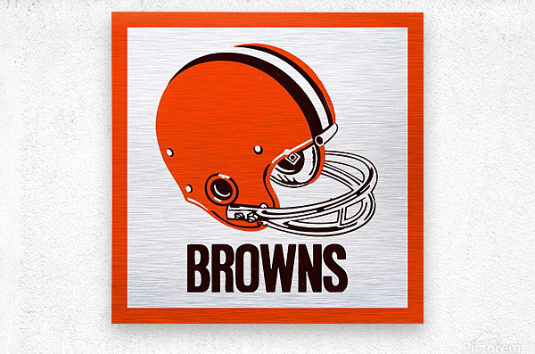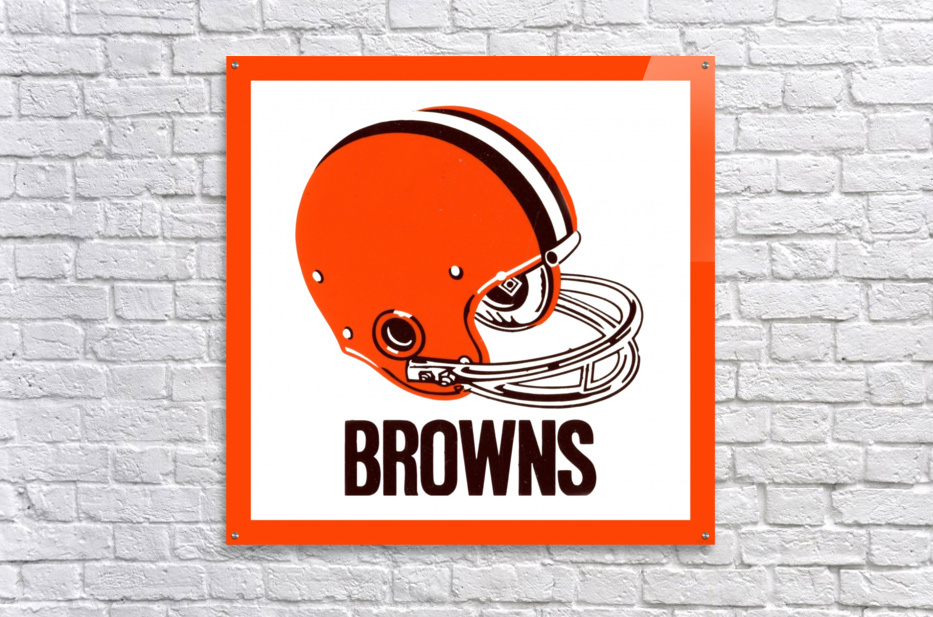 This Cleveland Browns football helmet art by Row One Brand was created from genuine 1971 Browns memorabilia. Row One Brand historic vintage football helmet art is not affiliated with, licensed, sponsored, authorized, or endorsed by any team, league, artist, athlete, other brand, venue, or licensing entity. Only non-copyright and expired copyright publications are used to create Row One Brand art. Translucent Row One logo printed in corner of art.