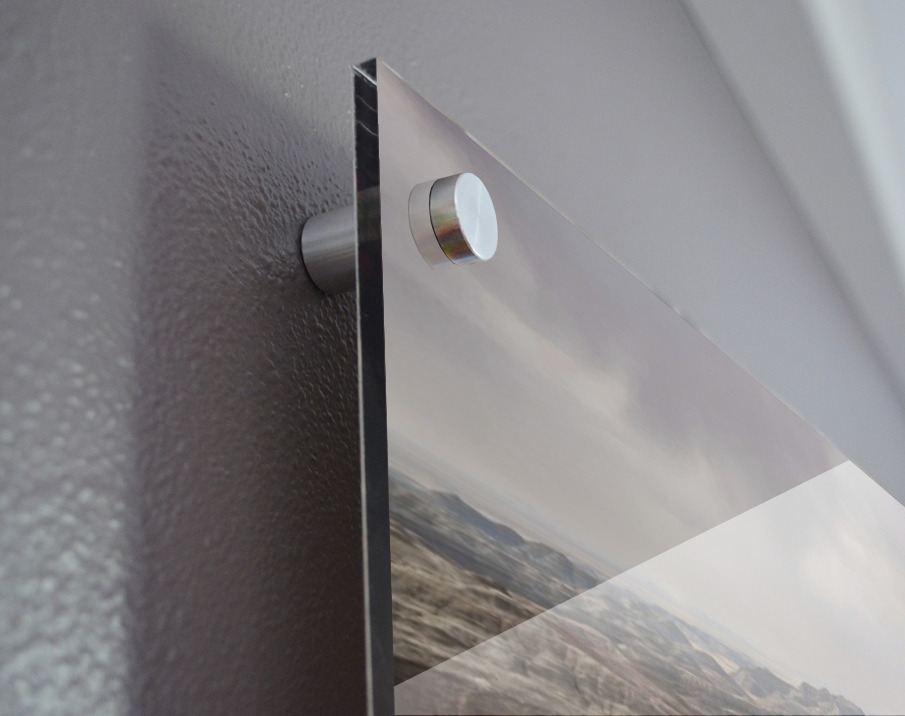 Printed to the edge - Ready to hang - provided with 4 premium polished aluminum stand off ( wall screws and mounting hardware provided )