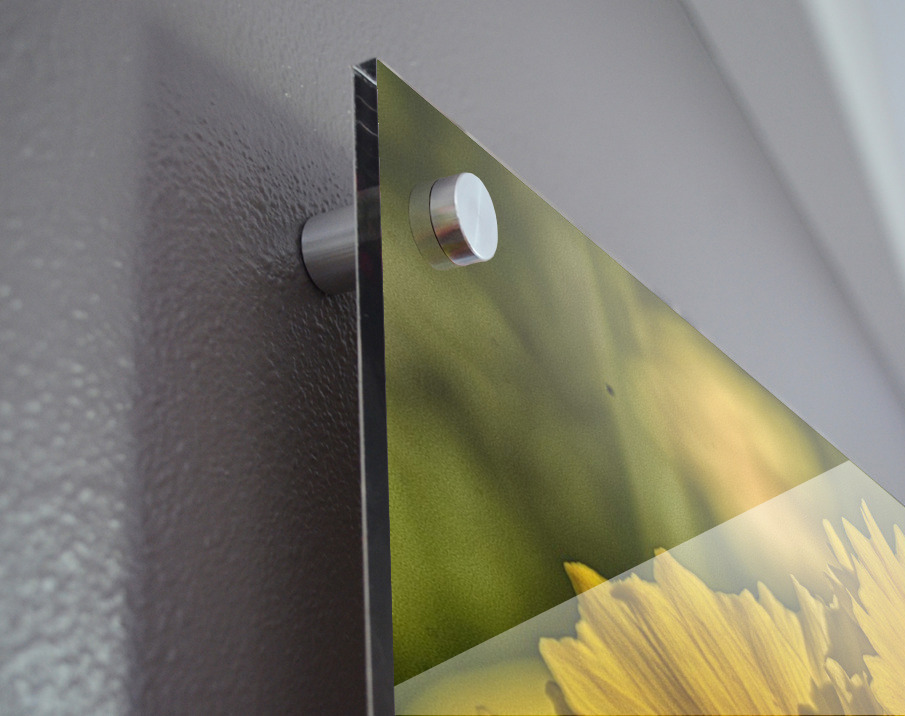 Printed to the edge - Ready to hang - provided with 4 premium polished aluminum stand off ( wall screws and mounting hardware provided )
