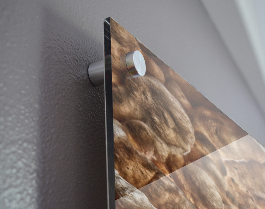 Printed to the edge - Ready to hang - provided with 4 premium polished aluminum stand off ( wall screws and mounting hardware provided )