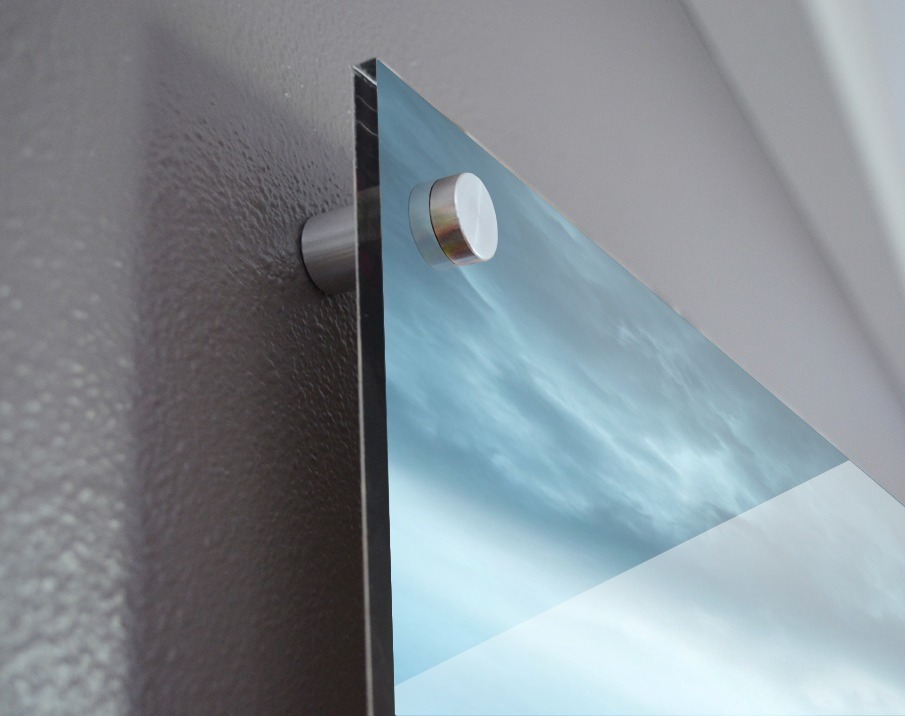 Printed to the edge - Ready to hang - provided with 4 premium polished aluminum stand off ( wall screws and mounting hardware provided )