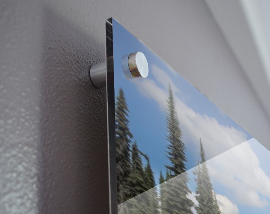 Printed to the edge - Ready to hang - provided with 4 premium polished aluminum stand off ( wall screws and mounting hardware provided )