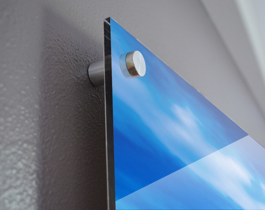 Printed to the edge - Ready to hang - provided with 4 premium polished aluminum stand off ( wall screws and mounting hardware provided )