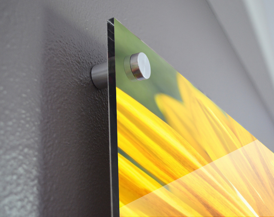 Printed to the edge - Ready to hang - provided with 4 premium polished aluminum stand off ( wall screws and mounting hardware provided )