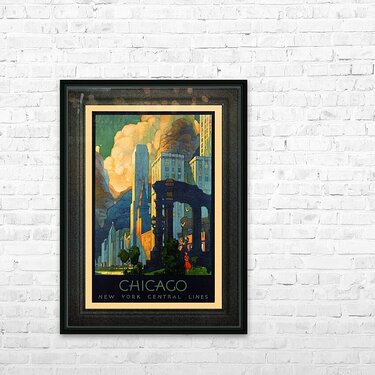 Art Deco Chicago Vintage Travel Poster Picture Frame Printing