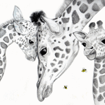Graphite drawing of a Giraffe family with bee's .