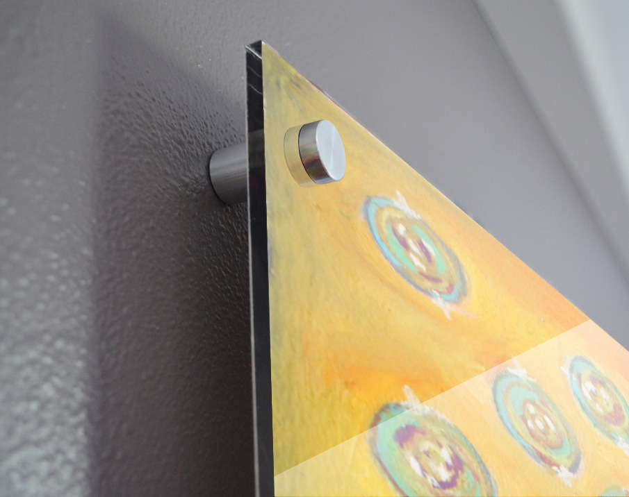 Printed to the edge - Ready to hang - provided with 4 premium polished aluminum stand off ( wall screws and mounting hardware provided )