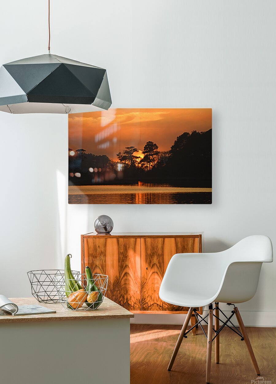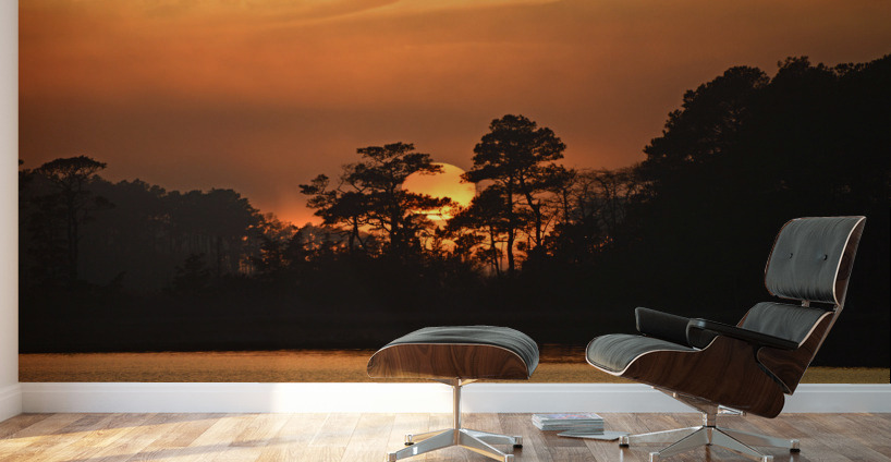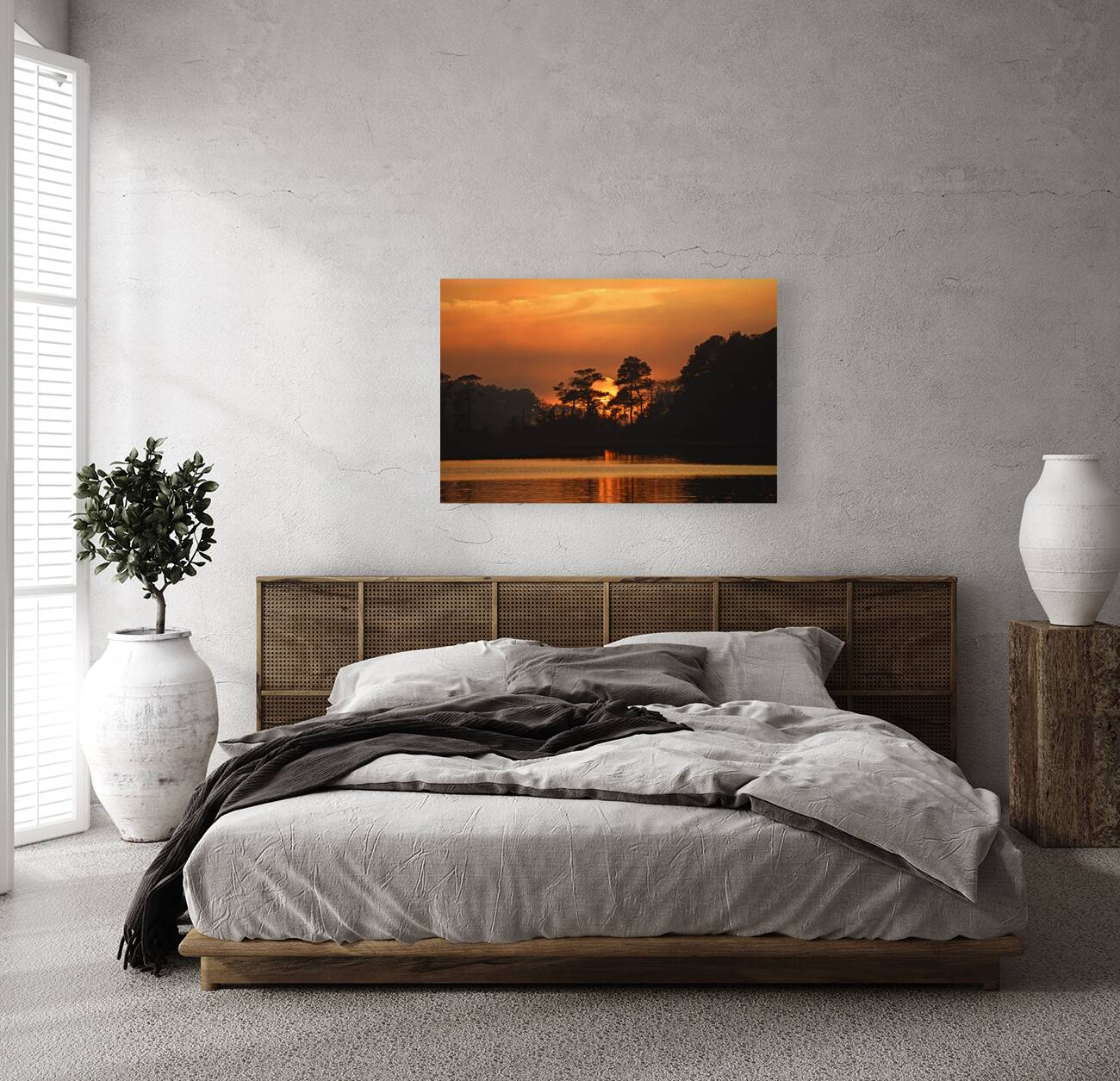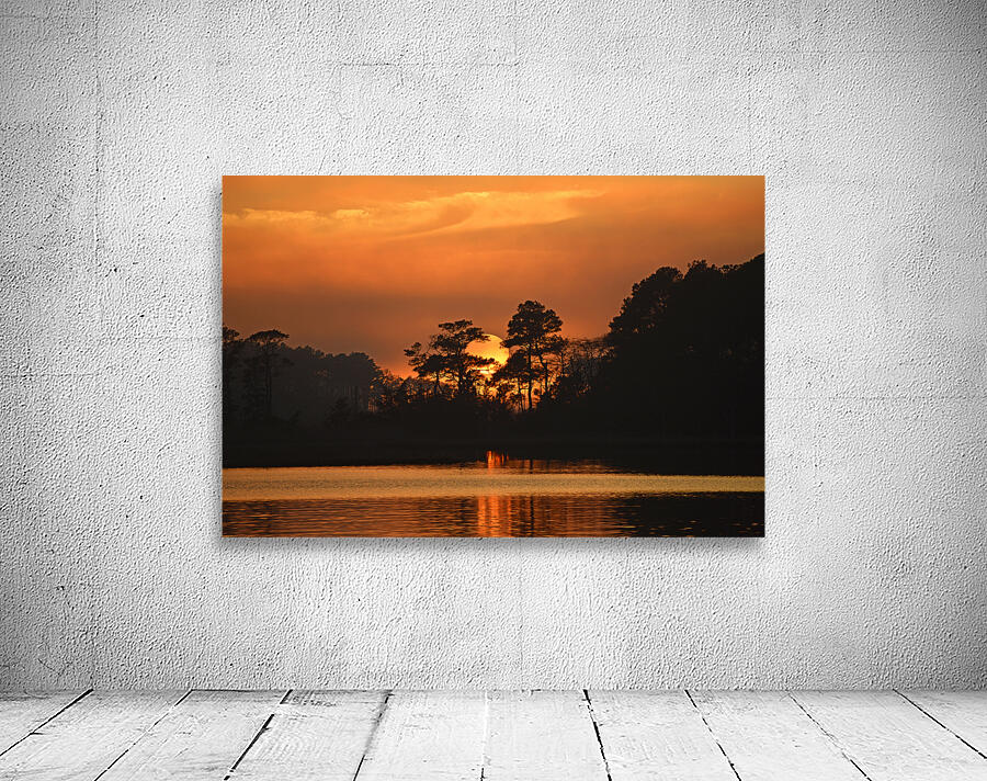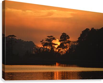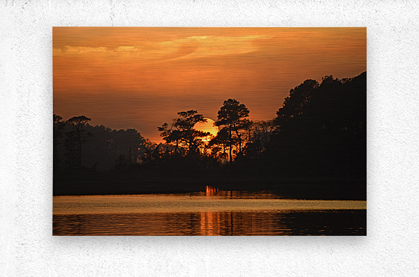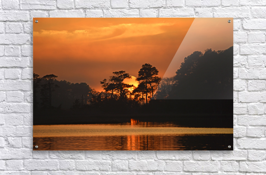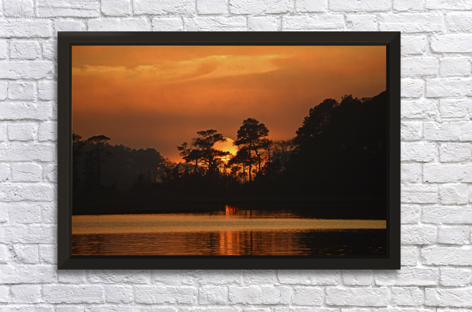 The setting sun disappears into the trees at the western edge of Assawoman Bay at The Point of the Live Bayside Community. This golden sunset is in southern Delaware to the west of Ocean City, Maryland, and Fenwick Island, Delaware. Every sunset is different even if you view them from the exact same location. Some sunsets are bright and colorful and others are a bit more subdued and mysterious. Take your pick on this one - it was spectacular to see in person. It can decorate your home every day of the year or even make a great gift for a friend or loved one.