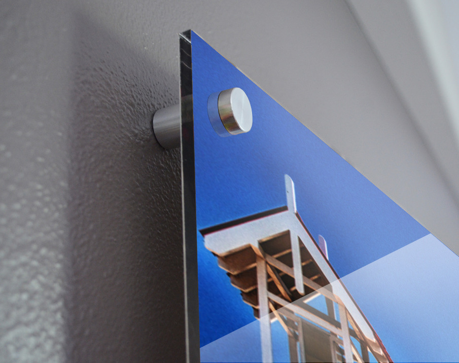 Printed to the edge - Ready to hang - provided with 4 premium polished aluminum stand off ( wall screws and mounting hardware provided )