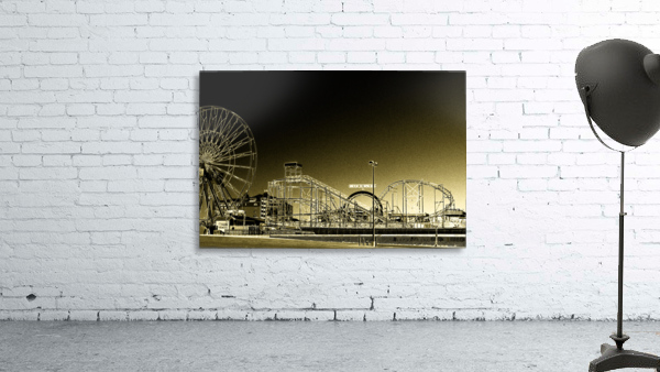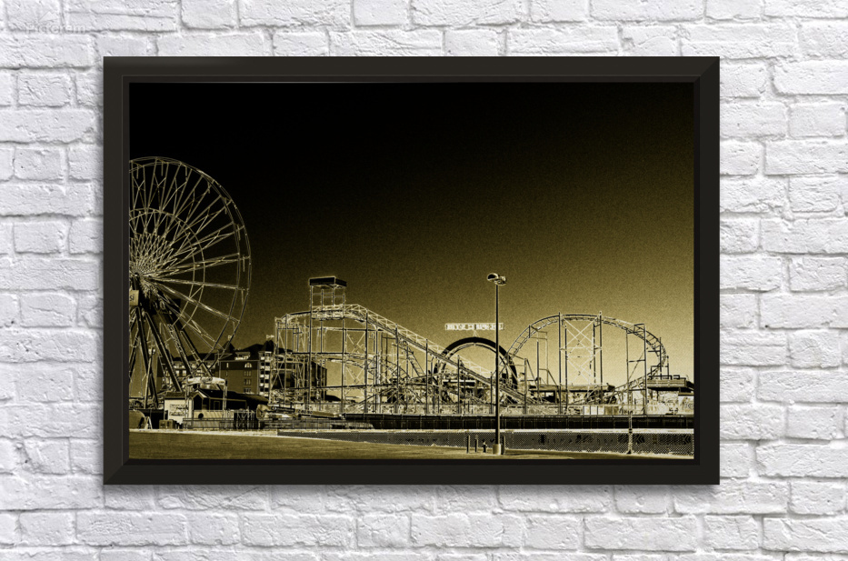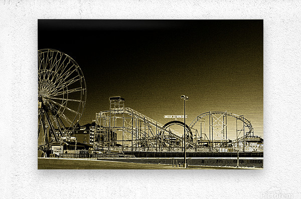 Get this artwork "Deserted Ocean City Amusement Pier Painted Gold" in a framed print.
