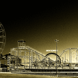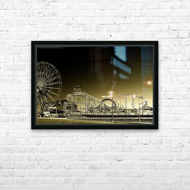 The Ocean City Amusement Pier looks stark but colorful under a golden, cool off-season sky. The pier may close and the rides may be deserted during the colder months at the beach but Ocean City, Maryland, remains open for business all year 'round. This popular image is offered in several varieties of editing. This one, as shown, is called "Painted Gold" - as it might exist on a cold winter afternoon. If you choose this to display in your home or office, where will you hang it? Place your order today.