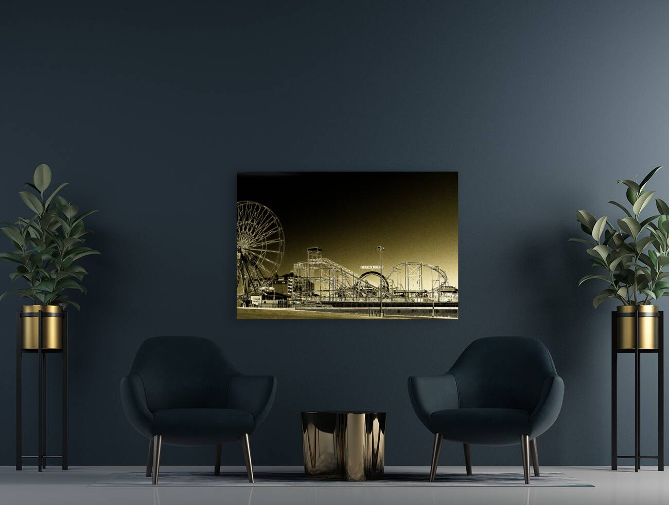ABOUT THIS ARTWORK: DESERTED OCEAN CITY AMUSEMENT PIER PAINTED GOLD