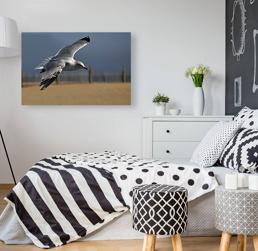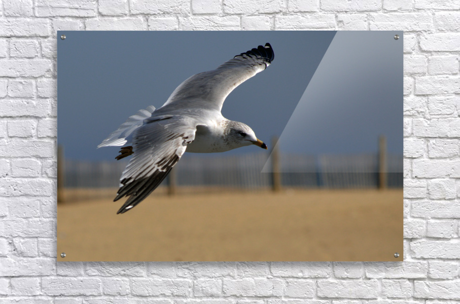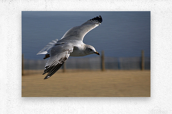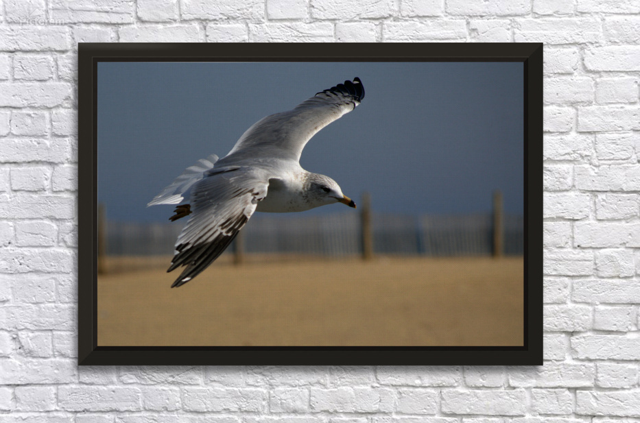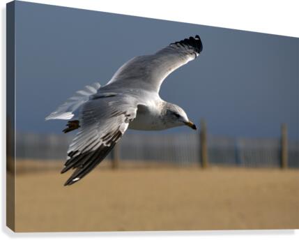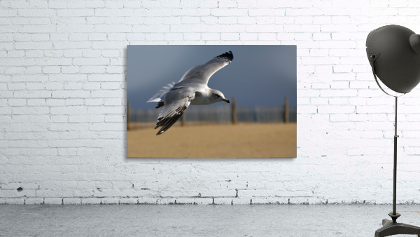 This seagull (maybe a Laughing Gull or a Common Gull) is cleared for a landing approach on the beach. He might be on final approach for a gentle touchdown on the sand. This photograph was taken in Ocean City, Maryland - but could be at a beach just about anywhere - or even on a wall in your home or office. This would make a perfect gift for the beach-lover in your life. (Psssttt...that could be you, too.)