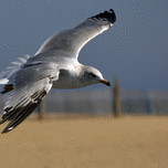 This seagull (maybe a Laughing Gull or a Common Gull) is cleared for a landing approach on the beach. He might be on final approach for a gentle touch...[+]
