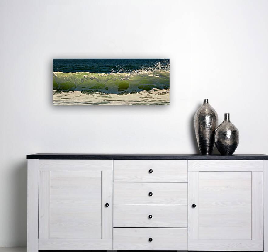 This green wave is about to crash onto the beach at Ocean City, Maryland. But it could just as well be crashing on a beach anywhere you might like it to be. In this panorama presentation his would make an impressive centerpiece for a wall in your home or office.