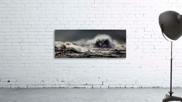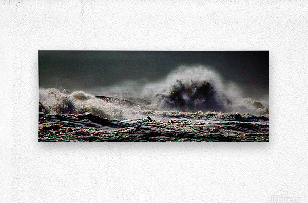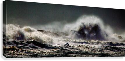 Can you see the monster? In this photograph of stormy seas off the beach at Ocean City, Maryland, the backlighting by the sun, as it began breaking through the cloud deck, created many interesting shadows and shapes. A long-lasting nor'easter created waves reaching almost record heights along the beaches of the Atlantic Ocean in Maryland and Delaware. The wind changed direction a bit on the final morning of the storm and created the confused seas that resulted in Bill Swartwout's capture of the "Monster of the Seas." At first this panorama appears to be done in black and white but it is actually a full color image. If you love the beach and often wish you could see the fury in the water created by a massive storm - here it is. If you purchase a print or canvas of this photograph you can see it all year long. Think about where you will display this piece and would you like to have it framed or printed on artist canvas?