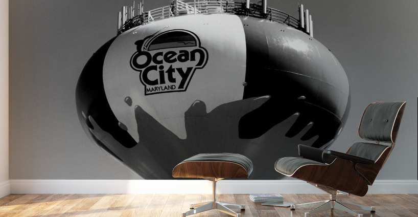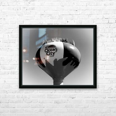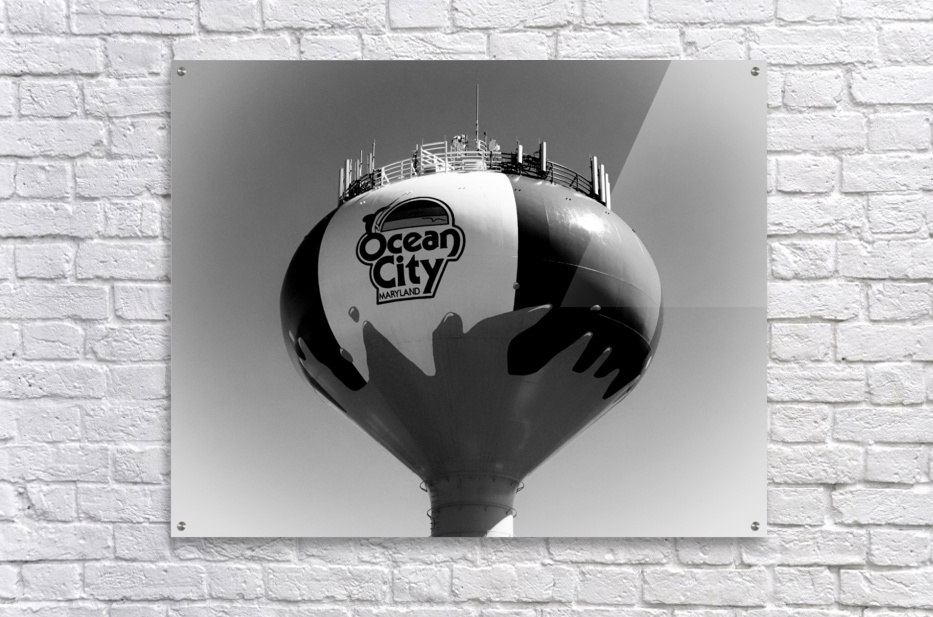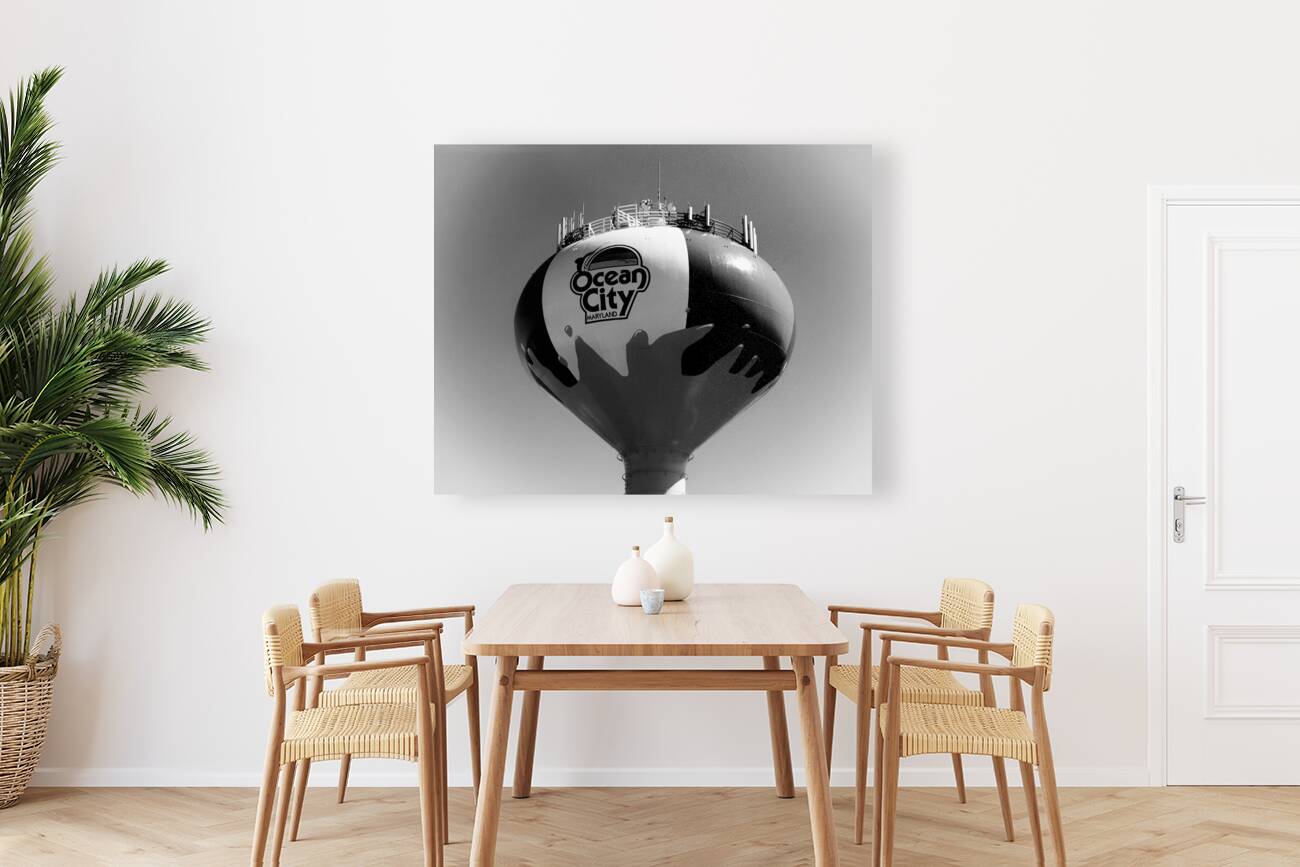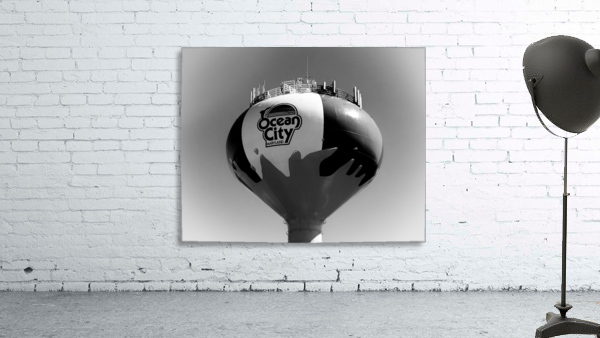 ABOUT THIS ARTWORK: OCEAN CITY BEACH BALL WATER TOWER IN BLACK AND WHITE