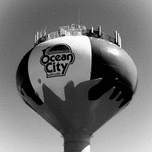OCEAN CITY BEACH BALL WATER TOWER IN BLACK AND WHITE