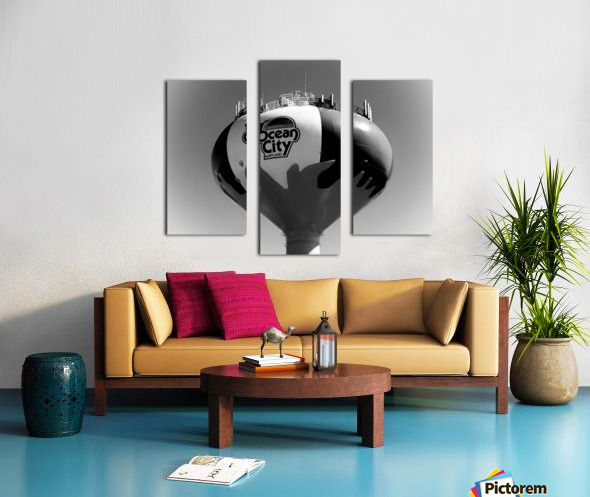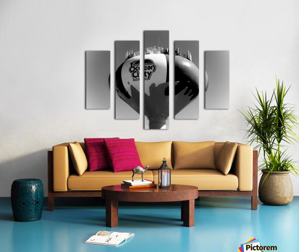 Ocean City Beach Ball Water Tower in Black and White Canvas print