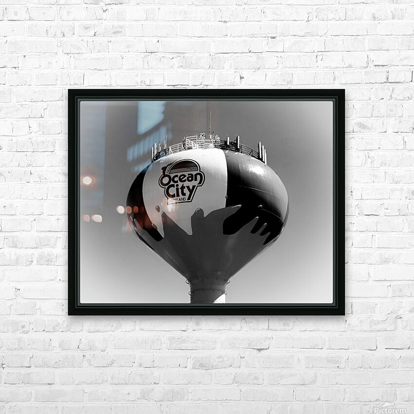 Ocean City Beach Ball Water Tower in Black and White Wall Decor Frame