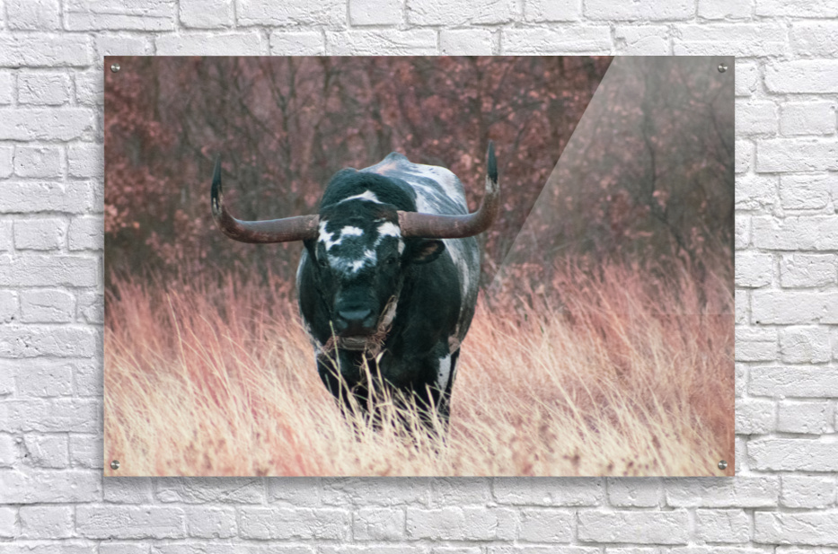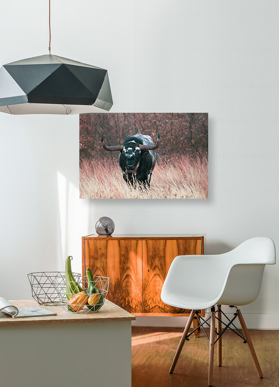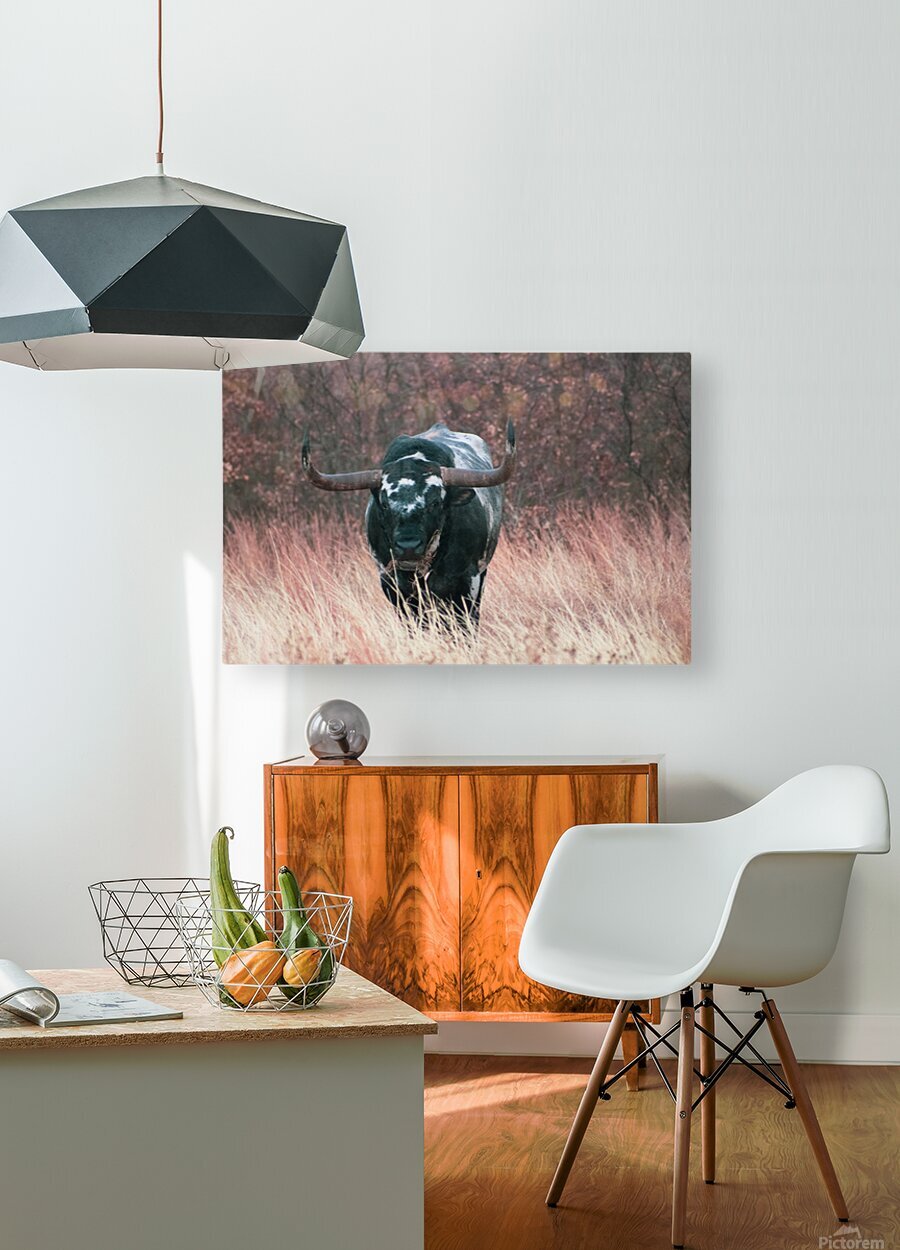 Longhorn  HD Metal print with Floating Frame on Back