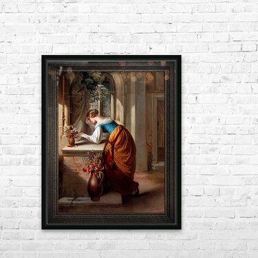 Gretchen vor der Statue der Heiligen Maria by Adam Vogler Classical Art Old Masters Reproduction Picture Frame Printing