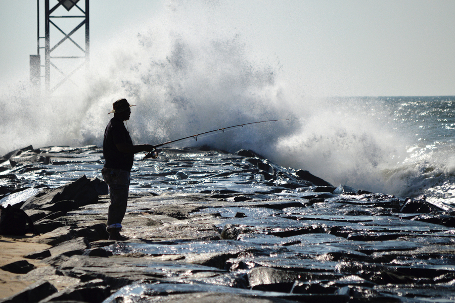 DEDICATED FISHERMAN AT THE OCEAN CITY INLET