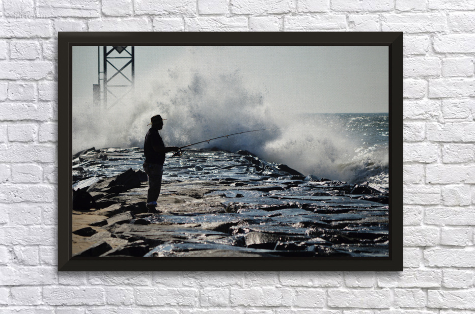 Dedicated Fisherman at the Ocean City Inlet Wall Decor Frame