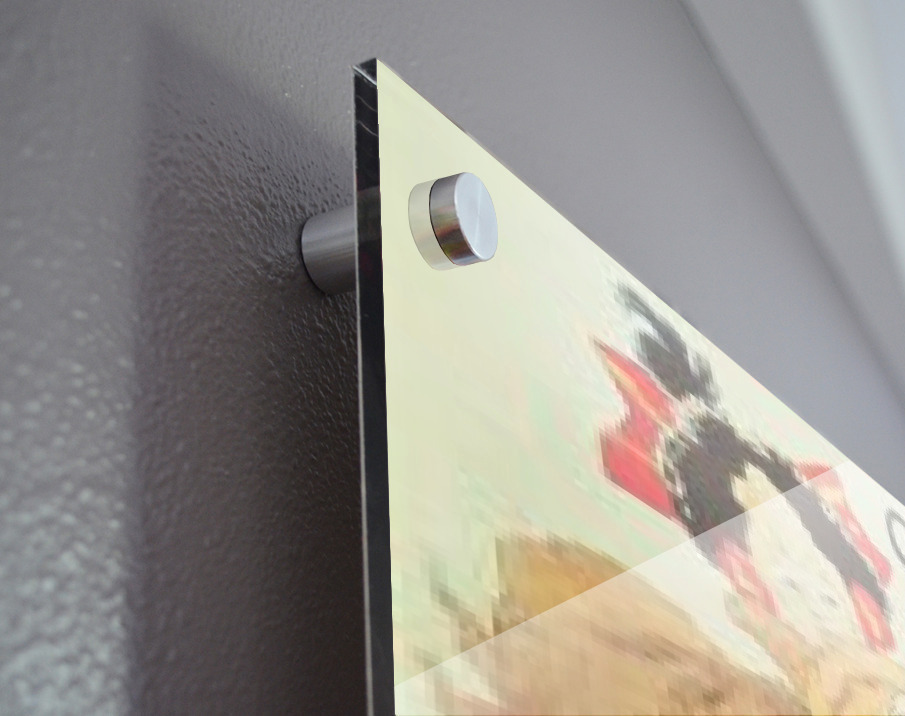 Printed to the edge - Ready to hang - provided with 4 premium polished aluminum stand off ( wall screws and mounting hardware provided )