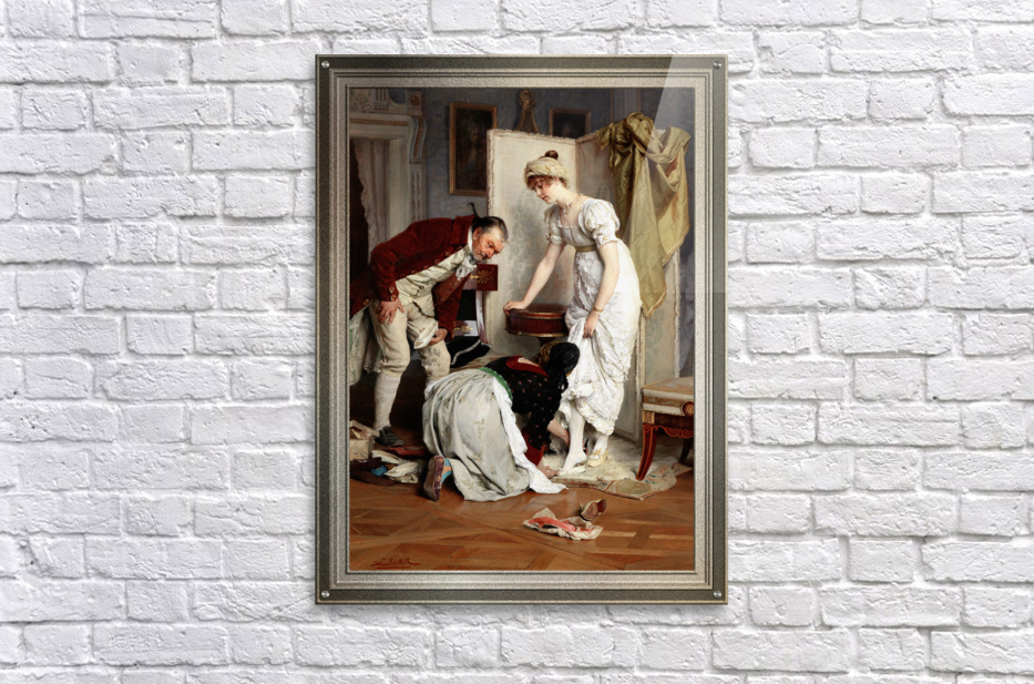 Die Schuhprobe by Franz Xaver Simm Classical Fine Art Old Masters Reproduction HD Sublimation Metal print with Decorating Float Frame (BOX)