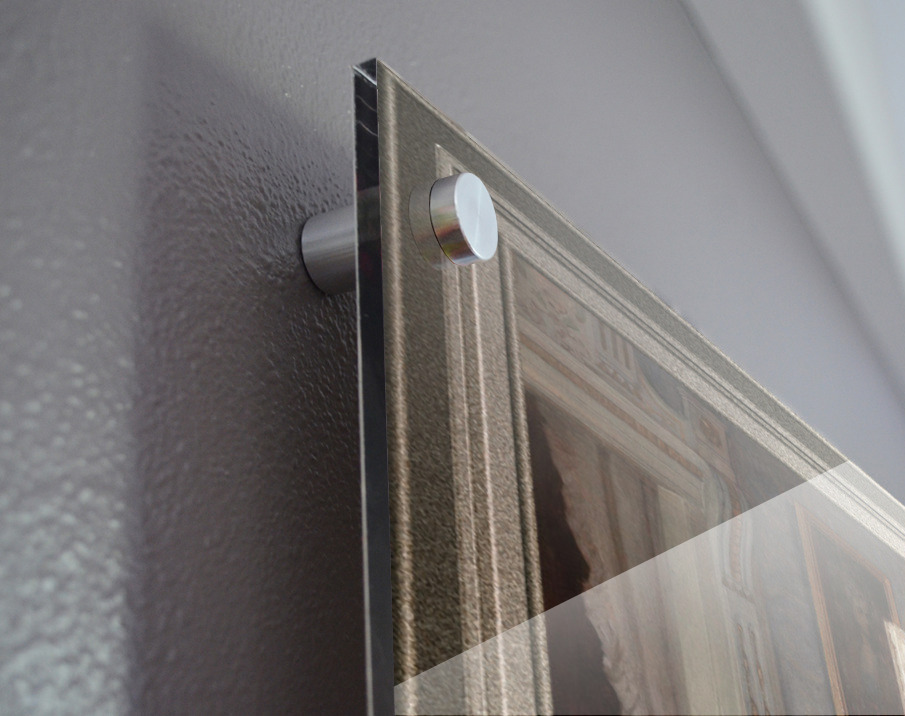 Printed to the edge - Ready to hang - provided with 4 premium polished aluminum stand off ( wall screws and mounting hardware provided )