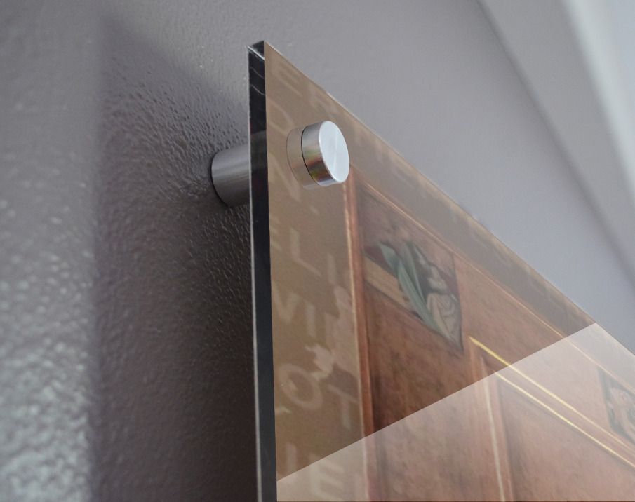 Printed to the edge - Ready to hang - provided with 4 premium polished aluminum stand off ( wall screws and mounting hardware provided )
