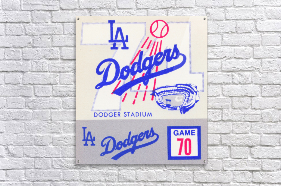 This 1974 LA Dodgers ticket stub canvas by Row One Brand will look great in your Los Angeles game room or office. The '74 Los Angeles Dodgers were National League Champions and played the Oakland A's in the World Series. Row One Brand historic baseball ticket stub posters are not affiliated with, licensed, sponsored, authorized, or endorsed by any team, league, artist, athlete, other brand, or licensing entity. Derivative art © 2021 Row One Brand