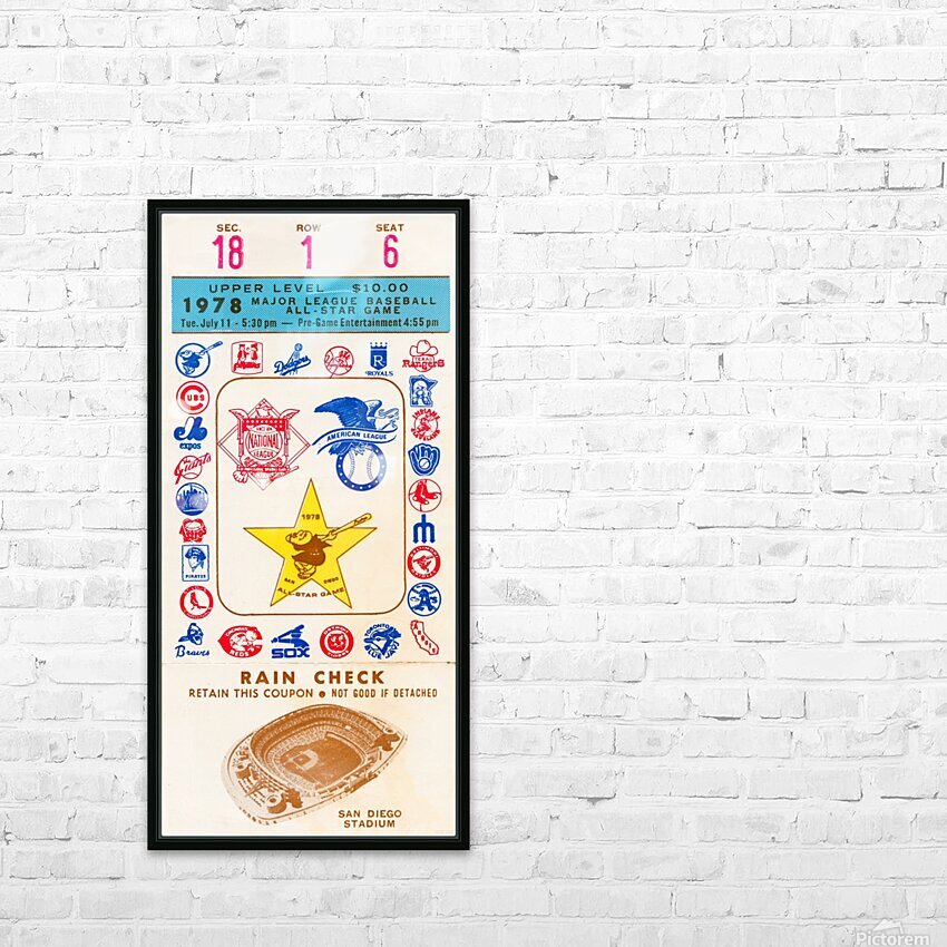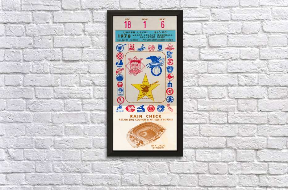 1978 San Diego Padres Baseball All-Star Ticket Canvas Picture Frame Printing