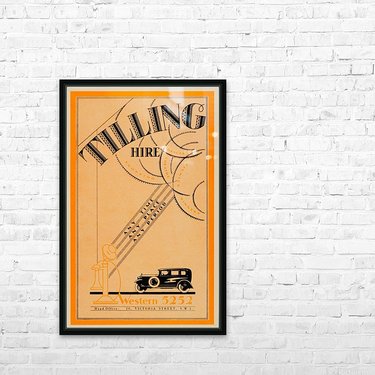 ABOUT THIS ARTWORK: 1933 TILLING HIRE VINTAGE CAR ART DECO FONT MINI POSTER