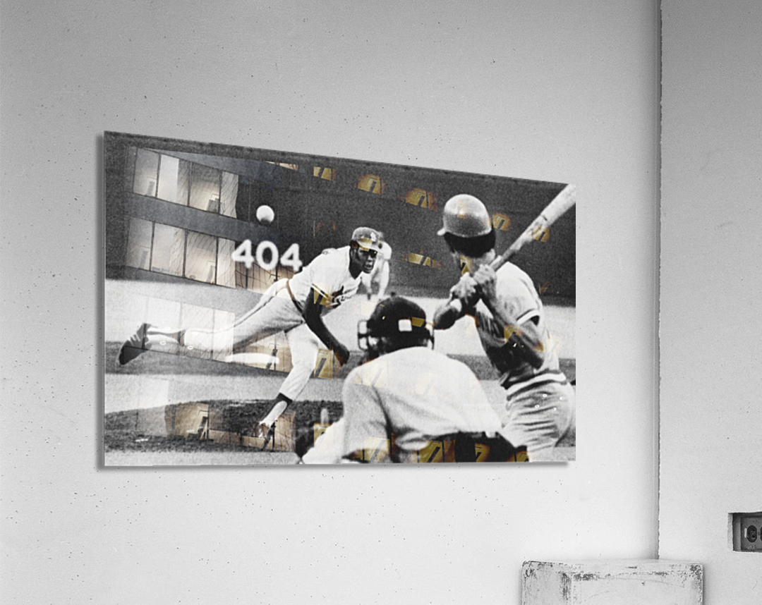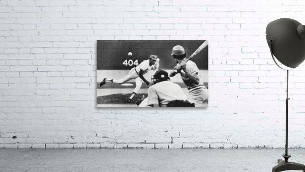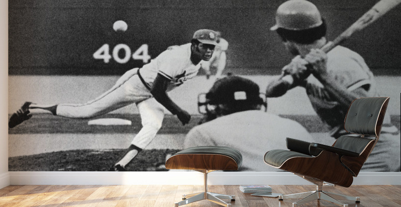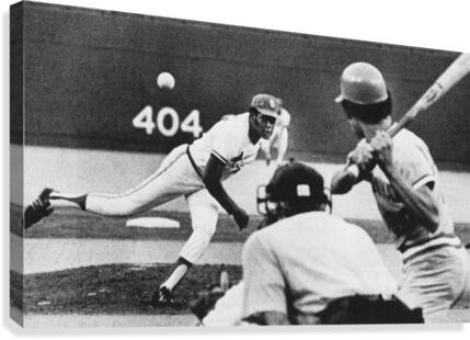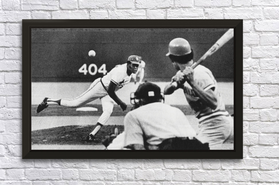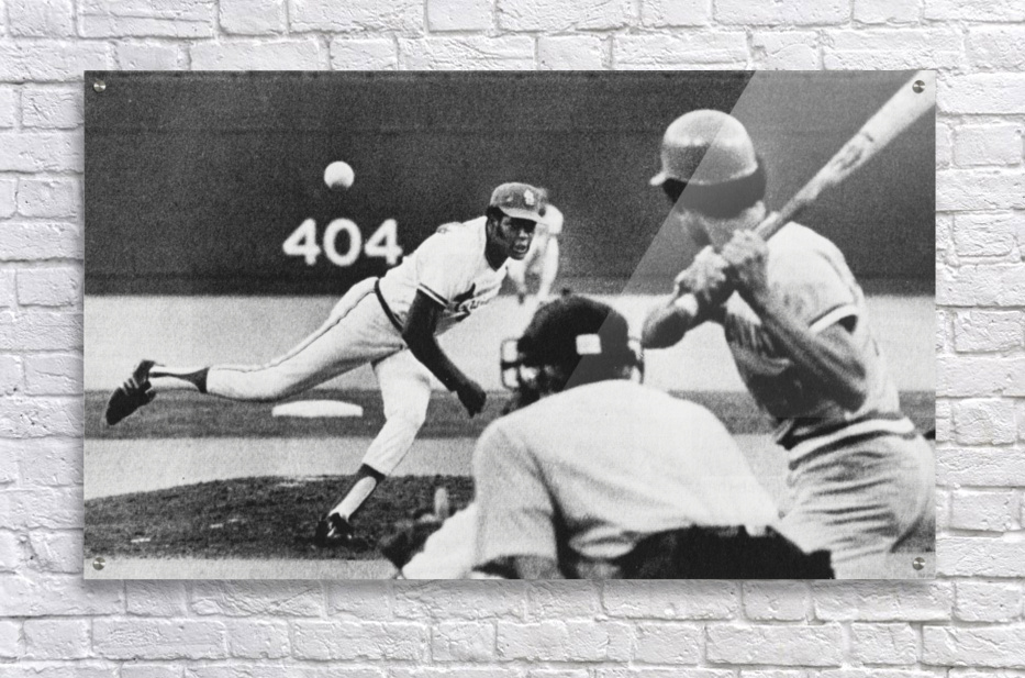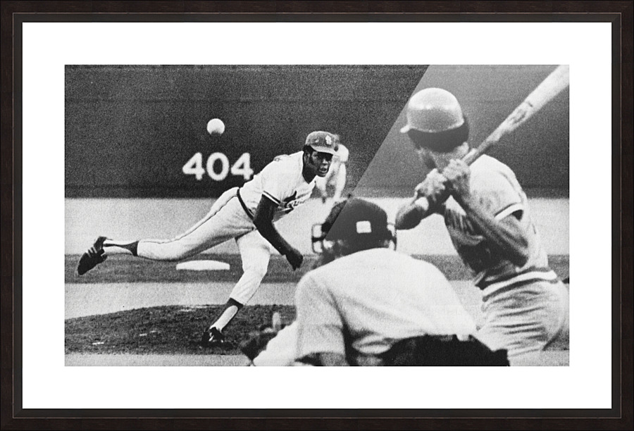 Cardinals legend Bob Gibson strikes out his 3,000th batter on July 17, 1974. This classic black and white sports art will look great in your St. Louis game room or office. If you love the Cardinals, you will love this baseball art on your wall. Row One Brand historic sports art prints are not affiliated with, licensed, sponsored, authorized, or endorsed by any team, league, other artist, athlete, other brand, or any licensing entity. Row One only uses historic, non-copyright sports memorabilia to create our retro sports wall art prints. © 2021 Row One Brand