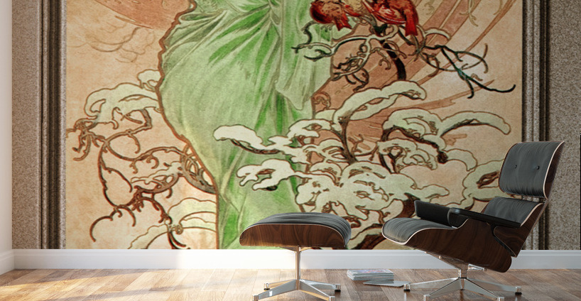 Winter In A Green Cape by Alphonse Mucha Vintage Old Masters Art Nouveau Reproduction  Wood print