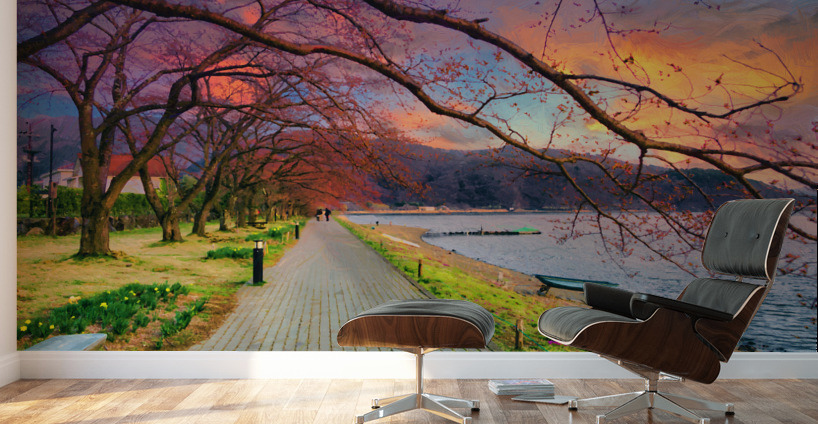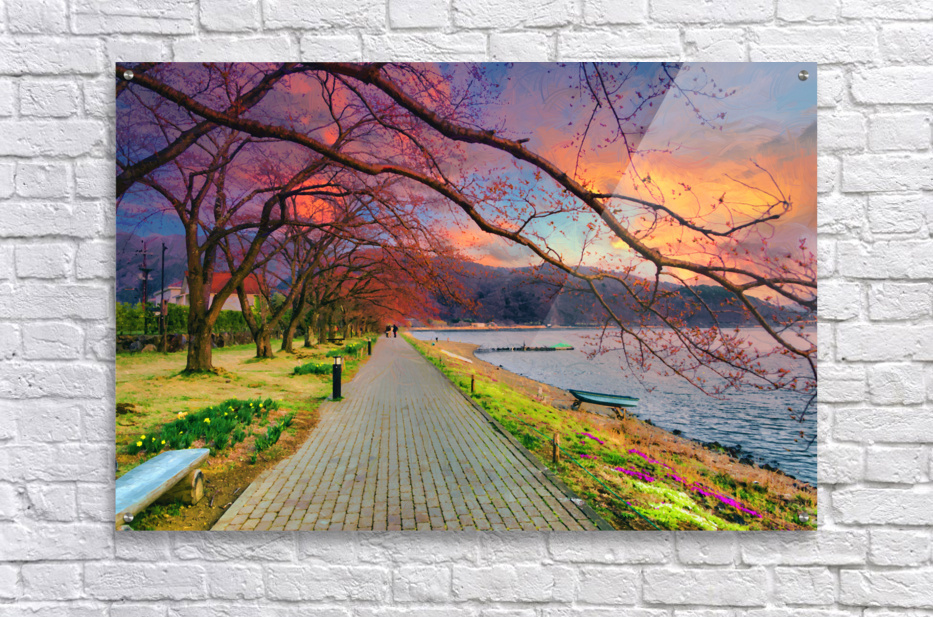 Get this artwork "Fugi lake path sunset arkvis A " in a framed print.