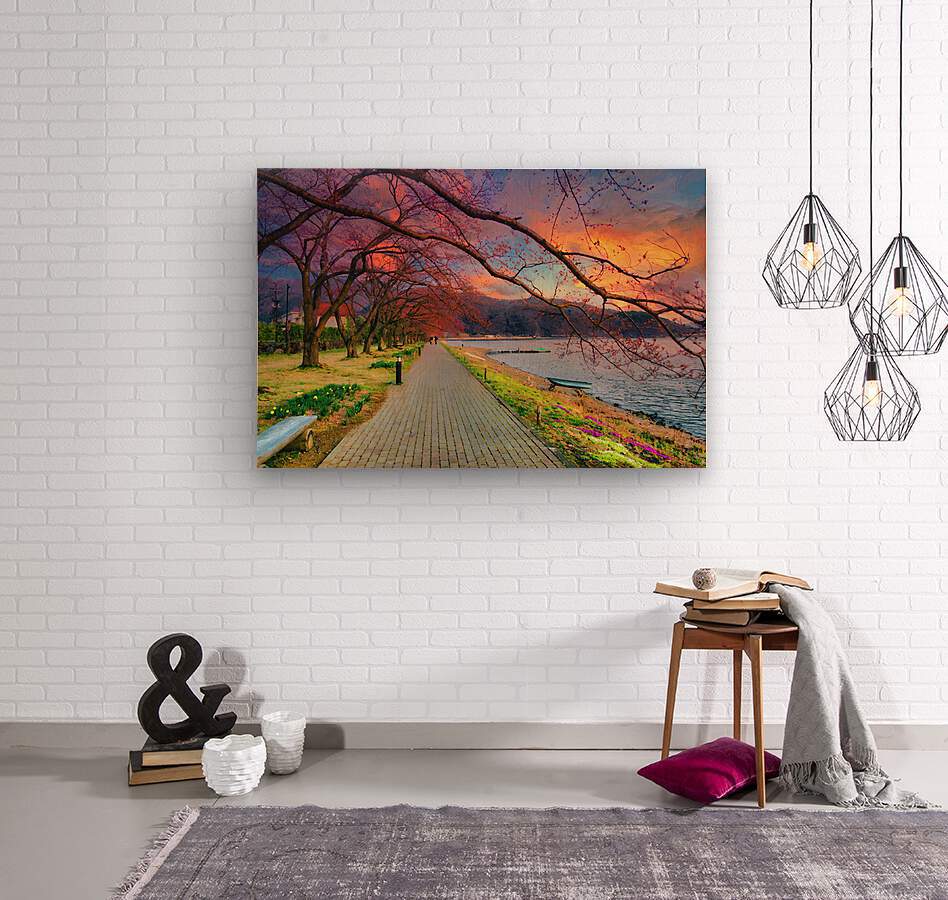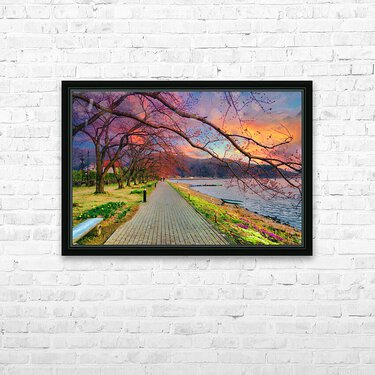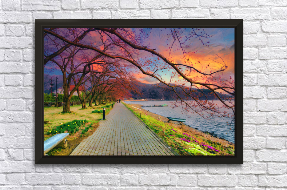Fugi lake path sunset arkvis A  Wall Decor Frame