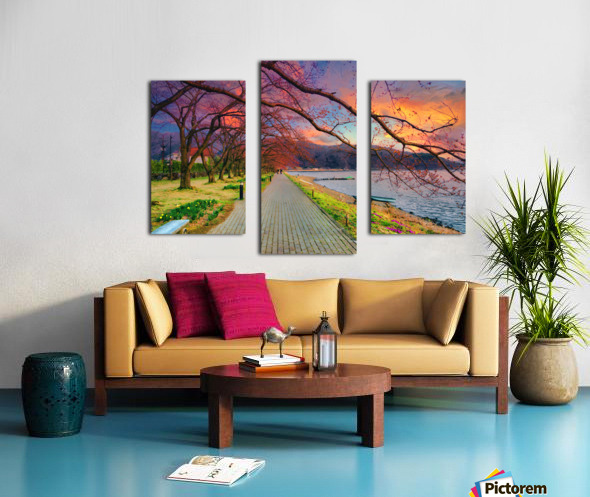 Fugi lake path sunset arkvis A  Canvas print