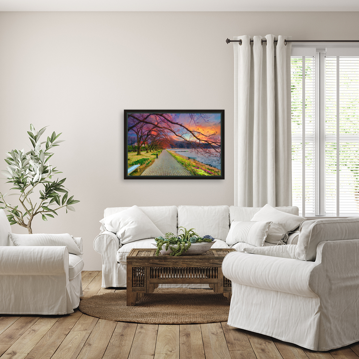 Printed to the edge & Ready to hang. With a floating frame on the back and hanging wire