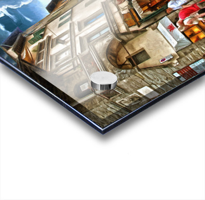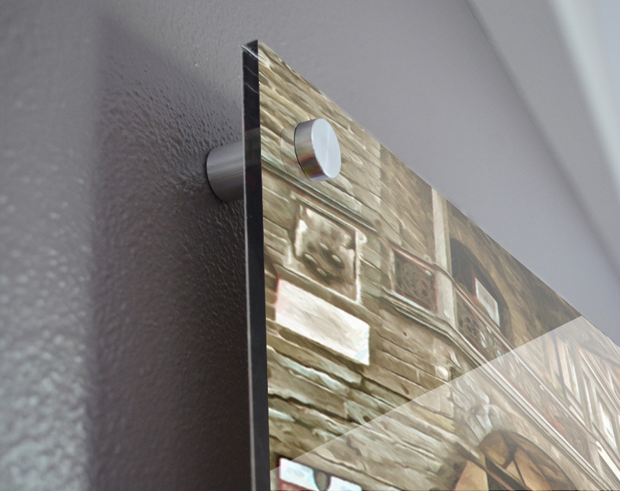 Printed to the edge - Ready to hang - provided with 4 premium polished aluminum stand off ( wall screws and mounting hardware provided )