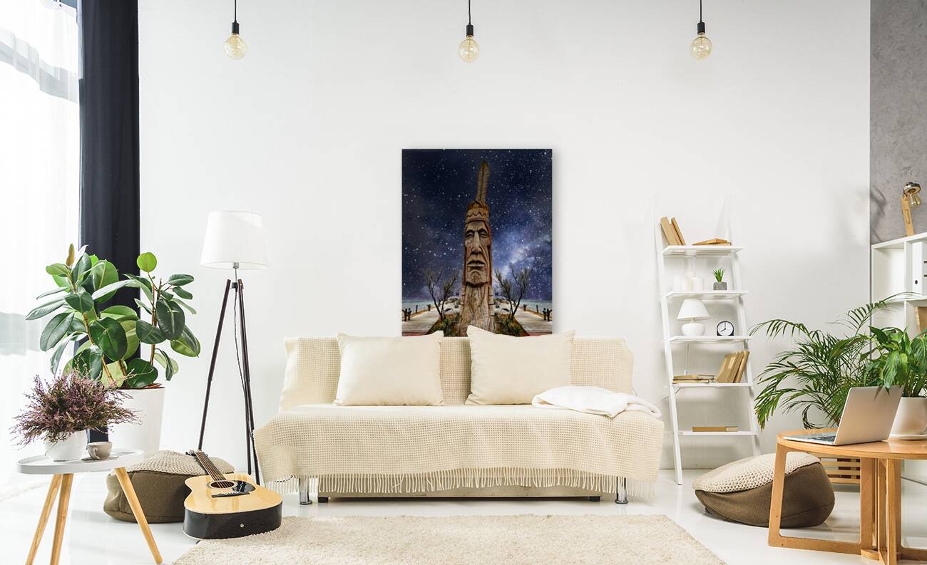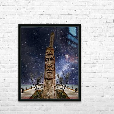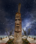 This iconic Indian Totem Pole monument, edited here to remove buildings and to add a "night sky" astronomical background, stands at the entrance to th...[+]