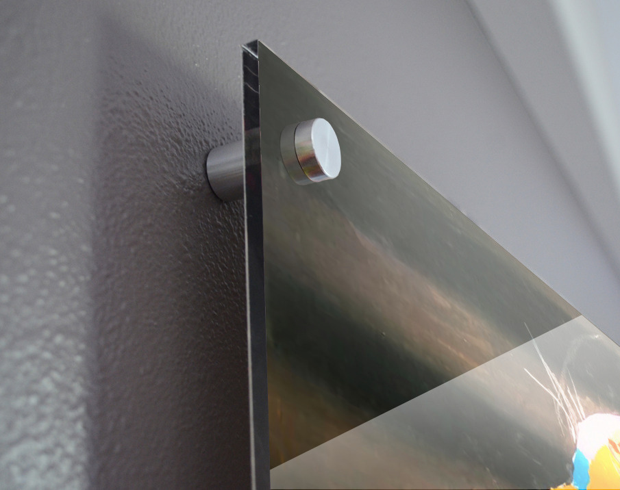 Printed to the edge - Ready to hang - provided with 4 premium polished aluminum stand off ( wall screws and mounting hardware provided )